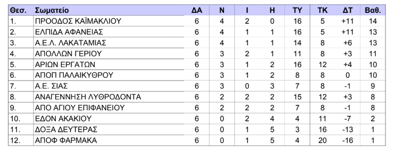 Δείτε πως έχει διαμορφωθεί η βαθμολογία στην Α’ Κατηγορία ΠΟΕΛ – GREE με το πέρας των 6 πρώτων αγωνιστικών: