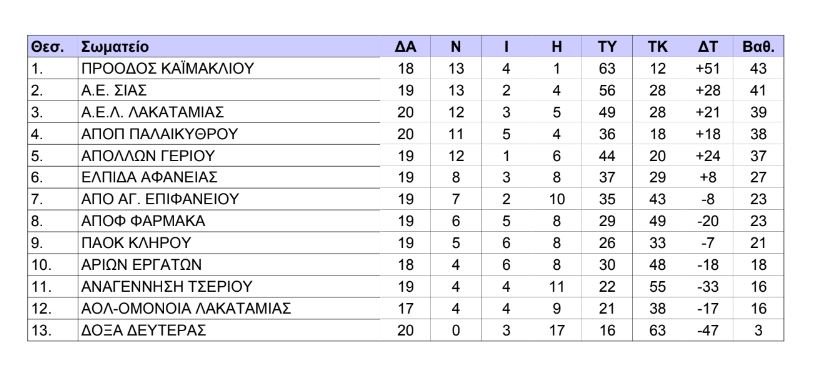 Η βαθμολογία στο πρωτάθλημα Α’ Κατηγορίας ΠΟΕΛ – GREE