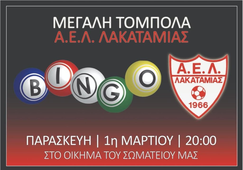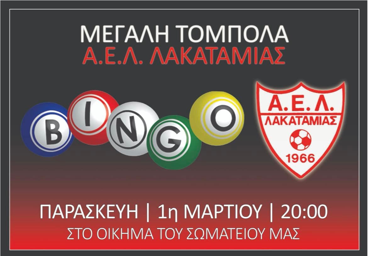 Highlights / Top stories / ΝέαΠαρασκευή 1η Μαρτίου η μεγάλη τόμπολα της ΑΕΛ Λακατάμιας 21 Φεβρουαρίου 2024, 18:18 ShareShare Μέσω ενημέρωσής της, η ΑΕΛ Λακατάμιας γνωστοποίησε την πραγματοποίηση μεγάλης τόμπολας την 1η Μαρτίου στις 20:00 στο οίκημα του Σωματείου. Αναλυτικά η σχετική ενημέρωση: