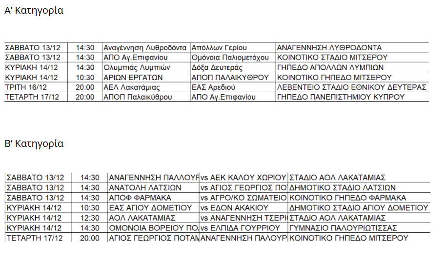 Highlights / Interviews / Top storiesΠρόγραμμα Πρωταθλημάτων Α’ & Β’ Κατηγορίας για το Σαββατοκύριακο 13–14 Δεκεμβρίου 15 Δεκεμβρίου 2025, 09:0515 Δεκεμβρίου 2025, 09:21 ShareShare