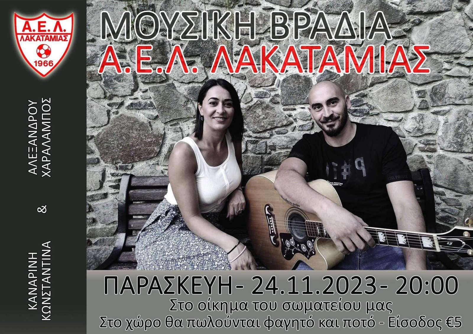 Την Παρασκευή 24 Νοεμβρίου η μουσική βραδιά της ΑΕΛ Λακατάμιας