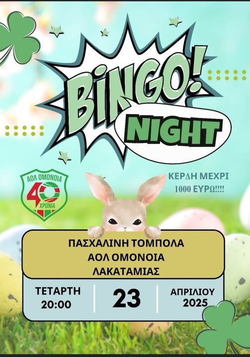 Highlights / Top stories / ΝέαΤην Τετάρτη 23 Απριλίου η τόμπολα του ΑΟΛ Λακατάμιας 17 Απριλίου 2025, 16:36 ShareShare Αναλυτικά όλες οι πληροφορίες της εκδήλωσης: