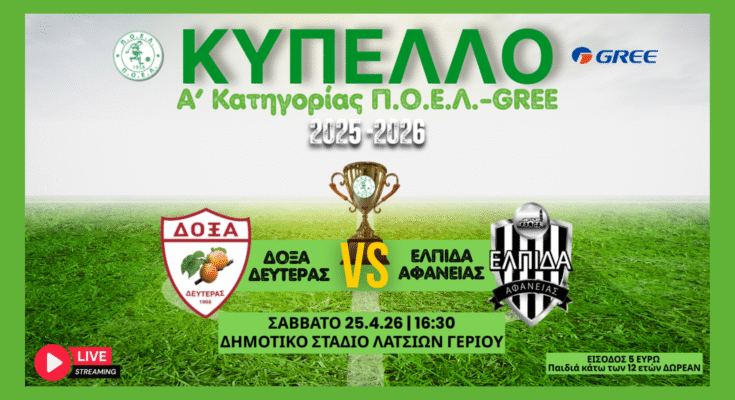 Ο τελικός Κυπέλλου Α’ Κατηγορίας Π.Ο.Ε.Λ.–GREE για τη σεζόν 2025–2026 φέρνει αντιμέτωπες δύο δυνατές ομάδες, τη Δόξα Δευτεράς και την Ελπίδα Αφάνειας, σε μια αναμέτρηση που αναμένεται συναρπαστική από το πρώτο μέχρι το τελευταίο λεπτό.