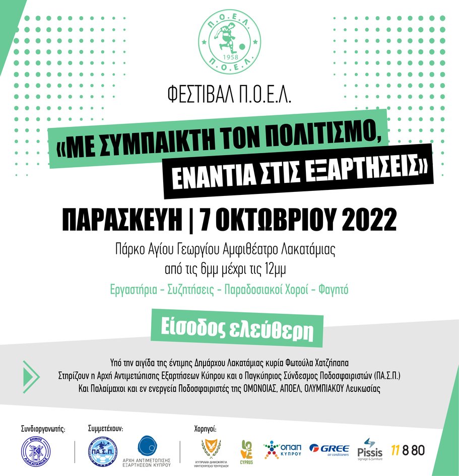 ΦΕΣΤΙΒΑΛ ΠΟΕΛ: «Με συμπαίκτη τον Πολιτισμό, ενάντια στις Εξαρτήσεις» Διαβάστε Περισσότερα