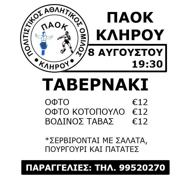 Στις 8 Αυγούστου η 3η καλοκαιρινή βραδιά στο στο ταβερνάκι του ΠΑΟΚ Κλήρου Διαβάστε Περισσότερα