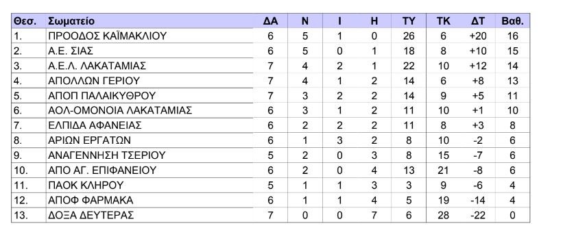 Highlights / Top stories / ΝέαH βαθμολογία της Α’ Κατηγορίας ΠΟΕΛ – GREE μετά το τέλος της 7ης αγωνιστικής 14 Νοεμβρίου 2022, 18:46 ShareShare Δείτε πως διαμορφώνεται η βαθμολογία του πρωταθλήματος Α’ Κατηγορίας ΠΟΕΛ – GREE μετά και το πέρας της 7ης αγωνιστικής: