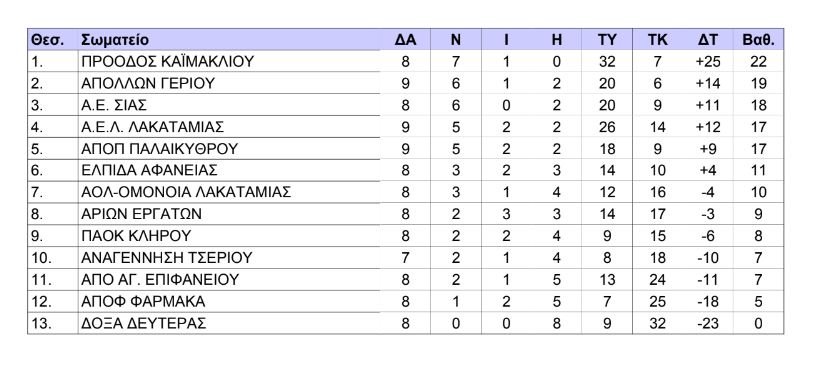 Δείτε πως διαμορφώνονται οι βαθμολογίες στα Πρωταθλήματα Α’ και Β’ Κατηγορίας ΠΟΕΛ – GREE μετά το πέρας της 9η και 8ης αγωνιστικής αντίστοιχα: