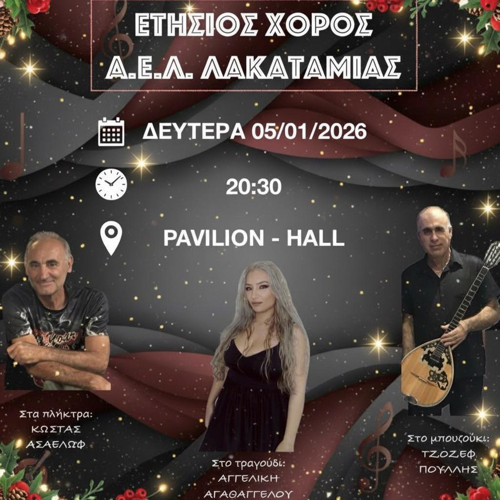 Η ΑΕΛ Λακατάμιας σας προσκαλεί σε μια αξέχαστη μουσική βραδιά γεμάτη κέφι, χορό και ζωντανή διασκέδαση!